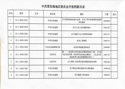 本次开放档案涉及2个全宗,共开放145353件,分别为中共晋东南地区委员会、中共晋东南地委组织部,均形成于1948年至1985年。其中,中共晋东南地区委员会全宗开放11193件;中共晋东南地委组织部全宗开放134160件。该批档案真实记录了晋东南地区政治建设、经济发展、文化教育等领域的历史全貌,既是党和政府科学决策、工作查考的重要凭证,也是研究晋城地方历史、传承地域文化的珍贵史料。
